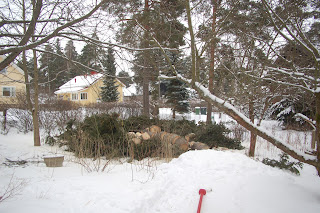 Tänään kävi Entti oy tukemassa kirsikkapuun. Tässä kuvassa näkyy arboristi puussa. Ja kun oikein tarkasti katsoo, niin siellä näkyy myös tuentaliinatkin. Siisti tuli. Nyt jäädään odottelemaan kevään kukkaloistoa!
